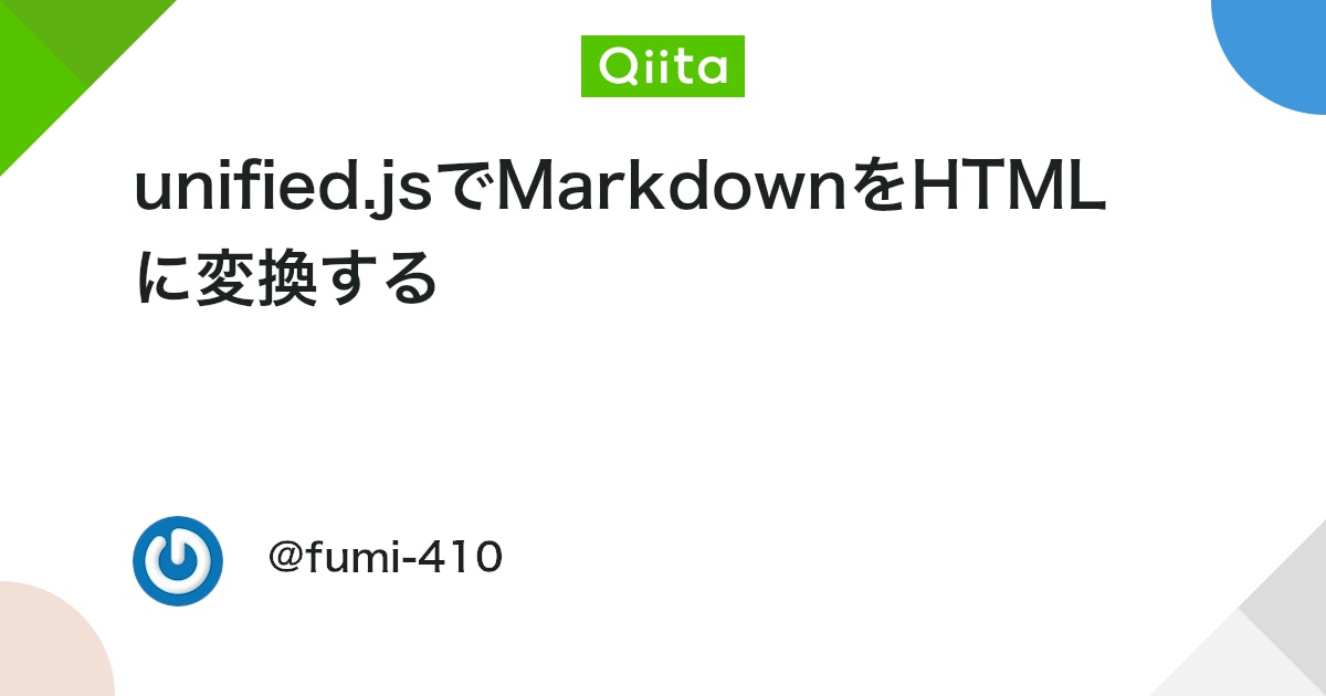 unified.jsでMarkdownをHTMLに変換する - Qiita