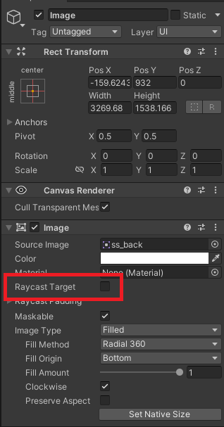 Image.raycastTargetをfalseにすることでUIはマウスイベントを無視するようになります。