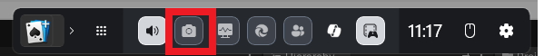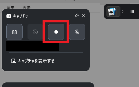 Win+Gを押しても録画メニューが表示されない場合は、画面上部のカメラアイコンをクリックして再表示します。