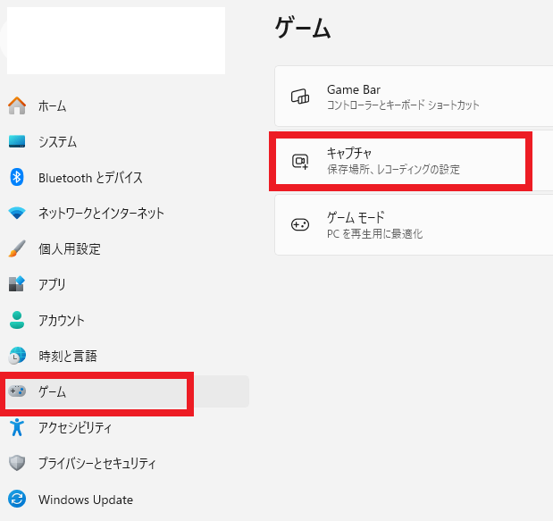 Windowsの設定を開き、左側のゲームを開き、キャプチャを表示します。