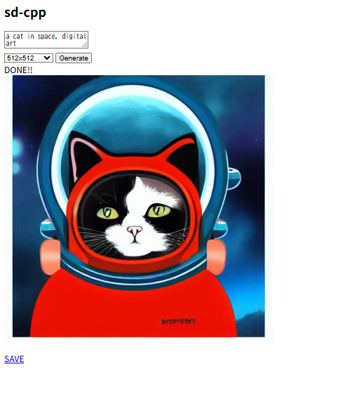 <textarea id="prompt" placeholder="Prompt...">a cat in space, digital art</textarea>